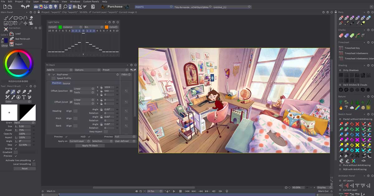 Specialized Tools: TVPaint provides a variety of drawing and painting tools specifically optimized for raster techniques, ideal for frame-by-frame animation.